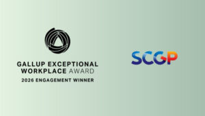 SCGP หนึ่งใน 78 องค์กรจากกว่า 6,000 แห่งทั่วโลกที่ร่วมงานกับ Gallup ที่ได้รับรางวัล Gallup Exceptional Workplace Award (GEWA) 2026 ในประเภท Engagement Winner เพื่อยกย่ององค์กรที่พนักงานมีความผูกพันอย่างโดดเด่น