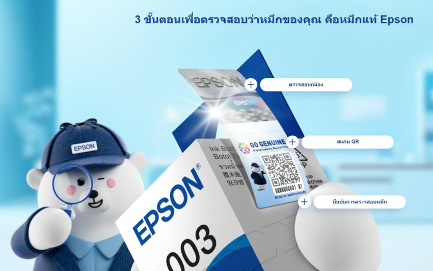 ทั้งนี้ เอปสันแนะนำให้ผู้บริโภคเลือกซื้อหมึกจากตัวแทนจำหน่ายที่ได้รับอนุญาตหรือร้านค้าออนไลน์อย่างเป็นทางการเท่านั้น โดยสามารถค้นหาร้านค้าตัวแทนจำหน่ายเอปสันได้ที่ https://www.epson.co.th/find-a-store พร้อมทั้งตรวจสอบเบื้องต้นจากโลโก้สามมิติบนกล่องบรรจุภัณฑ์ที่สามารถมองเห็นเมื่อกระทบแสง รวมถึงสแกนคิวอาร์โค้ดบนกล่องผ่านแอปพลิเคชัน Epson Genuine ซึ่งดาวน์โหลดได้ฟรีจาก Apple App Store และ Google Play โดยระบบจะแสดงผลทันทีว่าสินค้าเป็นของแท้หรือของปลอม ซึ่งจะเริ่มให้บริการตั้งแต่วันที่ 1 เมษายน 2569 เป็นต้นไป สามารถดูคำแนะนำขั้นตอนได้ที่ https://www.epson.co.th/genuineinks