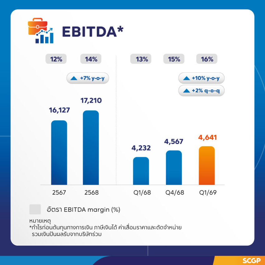 SCGP ประกาศผลประกอบการไตรมาสที่ 1 ปี 2569 กำไรเติบโต จากธุรกิจในอินโดนีเซียที่ฟื้นตัวจากการเพิ่มประสิทธิภาพการดำเนินงานและลดต้นทุน และจากแรงหนุนของการอุปโภคบริโภคในประเทศกลุ่มอาเซียน วางกลยุทธ์เชิงรุกต่อเนื่องในไตรมาสที่ 2 รับมือความผันผวนของเศรษฐกิจโลก เดินหน้าบริหารความต่อเนื่องทางธุรกิจ ควบคู่กับการเพิ่มประสิทธิภาพการผลิตและการปรับการใช้พลังงานอย่างเหมาะสม รวมถึงการนำเสนอโซลูชันเพื่อตอบโจทย์ลูกค้า (Customer Centricity)