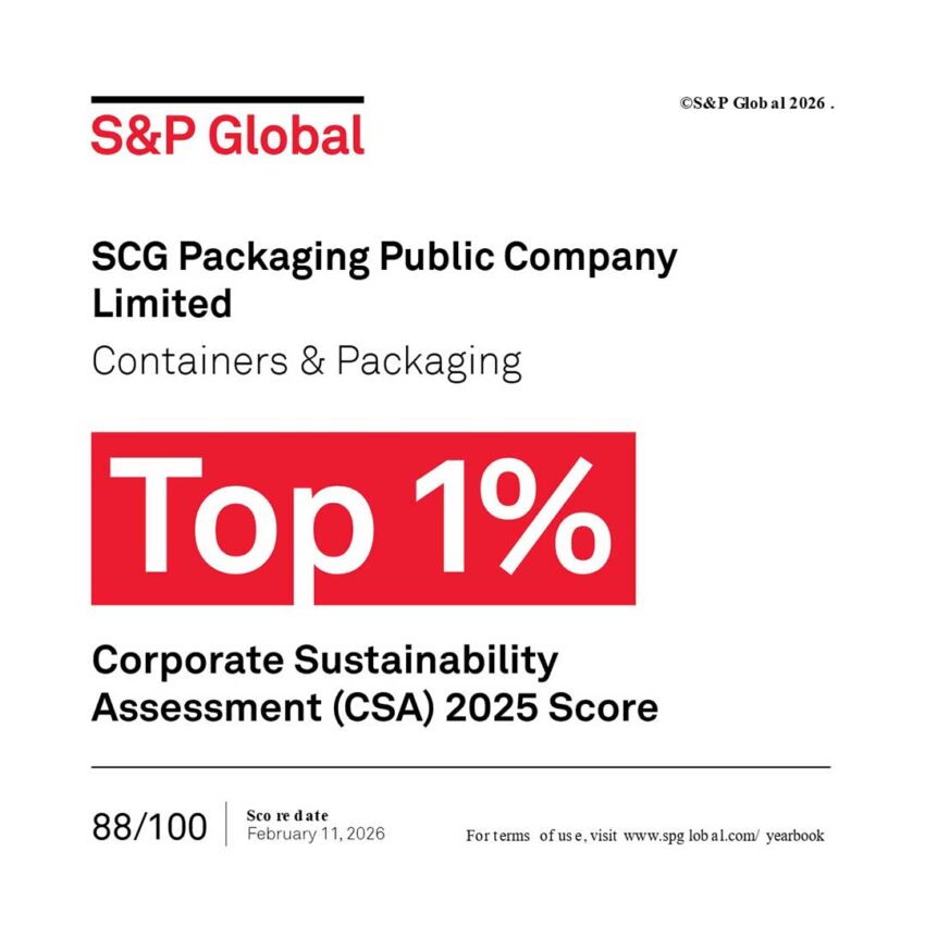 บริษัทเอสซีจี แพคเกจจิ้ง จำกัด (มหาชน) หรือ SCGP ได้รับการจัดอันดับสูงสุด Top 1% S&P Global กลุ่มอุตสาหกรรมบรรจุภัณฑ์ (Containers & Packaging) ติดต่อกันเป็นปีที่ 3 จากการประเมินดัชนีความยั่งยืนดาวโจนส์ หรือ Dow Jones Sustainability Index – DJSI ที่ยึดมั่นสร้างการเติบโตอย่างมีคุณภาพ สามารถรักษามาตรฐานความเป็นผู้นำ ด้านการดำเนินธุรกิจตามแนวทางการพัฒนาที่ยั่งยืน ในระดับโลกได้อย่างต่อเนื่อง ด้วยคะแนนโดดเด่นทั้ง 3 ด้าน ได้แก่ ด้านบรรษัทภิบาลและเศรษฐกิจ (Governance & Economic) จากการดำเนินธุรกิจ ภายใต้หลักบรรษัทภิบาลที่ดี ความโปร่งใส การบริหารความเสี่ยงอย่างเป็นระบบ จริยธรรมทางธุรกิจ และการบริหารห่วงโซ่อุปทานอย่างรับผิดชอบ ด้านสิ่งแวดล้อม (Environmental) ที่มุ่งสู่เป้าหมายการปล่อยก๊าซเรือนกระจกสุทธิเป็นศูนย์ และการขับเคลื่อนเศรษฐกิจหมุนเวียน ด้วยการเพิ่มการใช้พลังงานทางเลือก และการพัฒนาบรรจุภัณฑ์ที่รีไซเคิลได้ และด้านสังคม (Social) การพัฒนาบุคลากรให้มีทักษะ สอดคล้องกับทิศทางองค์กร พร้อมรับมือความท้าทายใหม่ของอุตสาหกรรม รวมถึงการสร้างการมีส่วนร่วมและความร่วมมือ กับผู้มีส่วนได้เสียตลอดห่วงโซ่คุณค่า เพื่อสร้างสมดุลในมิติของสิ่งแวดล้อม สังคม และบรรษัทภิบาล สู่การขับเคลื่อนธุรกิจสู่ความยั่งยืนระดับโลก